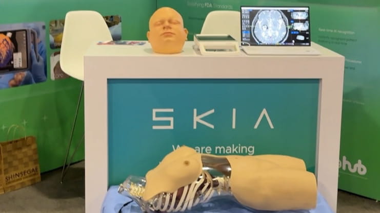 One device by SKIA used an OR-ready tablet device to align medical scans on a patient’s brain as a guide for surgical procedures—they call it “medical markerless AR”. While the super-sight it enables was striking, the size of the 2-handed device felt pretty bulky for any long-term use.